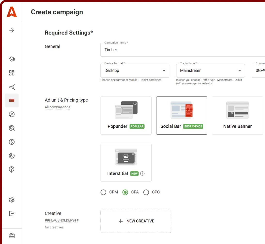 Spend less buying CPM/CPC traffic and setting rules to optimize it by eCPA or conversions (CPA Goal). Automate your bidding, allowing Smart CPM to compete for the best-converting placements at the fairest price.