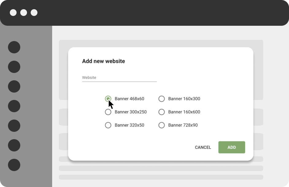 Get any ad format codein minutes. Monitor statistics and CPM. Filter the unwanted ad types if needed.