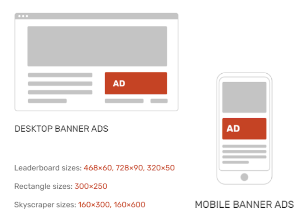 Display or banner advertising is the oldest type of online advertising with proven efficiency. Banners are images or GIF files that are to be placed on publishers’ websites, mobile sites, and blogs. According to IAB, there are typical and most clickable banner ad formats for desktop and mobile devices.